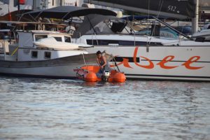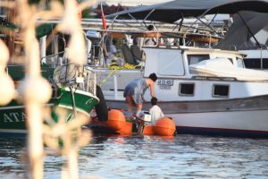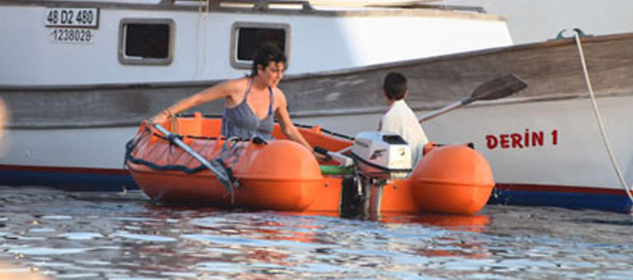 Görüntü yönetmeni eşi Mehmet Aksın’la 10 yıldır teknede yaşayan oyuncu Yeşim Büber, erzak almak için karaya indi.