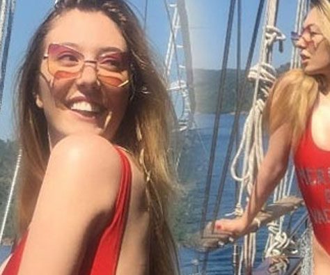 Selin Şekerci önceki gün Gümüşlük sahilde