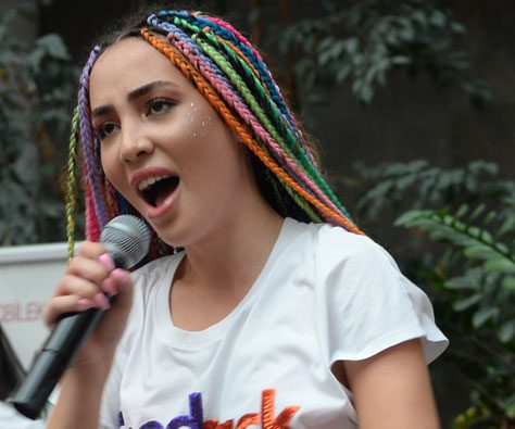 Renkli saç tarzından dolayı "Gökkuşağı Kız"