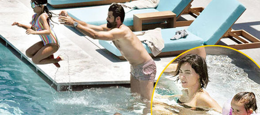 Bir süre şezlongda dinlenen çift, ardından kızlarıyla birlikte havuzda oyun oynarken objektife yansıdı.