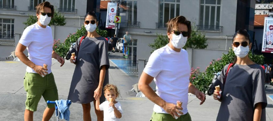 Çift, oğullarıyla yürüyüş yaparak dondurma yedi. Pandemi kurallarına uyan oyuncular, çevreden takdir topladı.