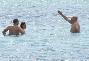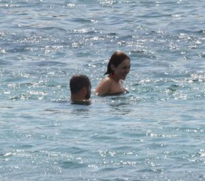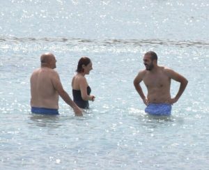 Birlikte deniz ve güneşin keyfini çıkaran çifte bir süre sonra futbol yorumcusu Sinan Engin de katıldı.