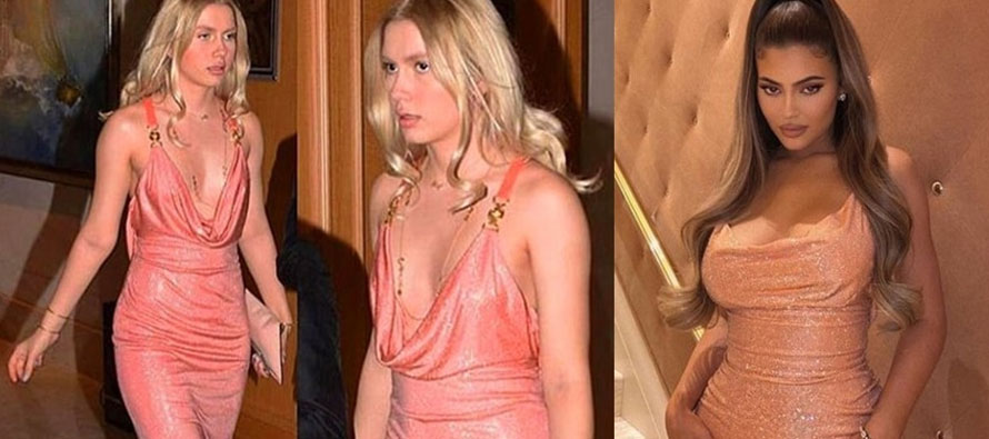 Dünyaca ünlü magazin yıldızı Kylie Jenner, toz pembe ışıltılı elbisesiyle verdiği pozları sosyal medya hesabından yayınladı. Jenner’ın üzerindeki elbise, genç şarkıcı Aleyna Tilki’nin geçtiğimiz yıl moda tasarımcısı Gülnur Güneş’in düğününde giydiği elbiseyi hatırlattı.