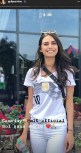 Amine Gülşe, 2018 FIFA Dünya Kupası’ndaki grubun son maçında Almanya’nın Güney Kore ile yapacağı karşılaşmayı izlemek için Almanya Milli Takımı’nda forma giyen sevgilisi Mesut Özil’in yanına gitti.