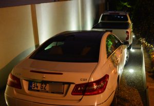 Gazetecilerin kendilerini fark etmemesi için Defne Samyeli’nin Mercedes marka aracını garaja alan Yılmaz, özel plakalı kendi cipini ise sokağa park etti.