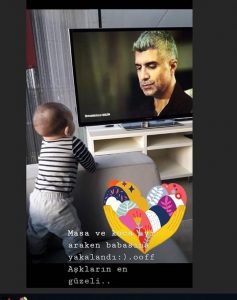 Özcan Deniz oğlu Kuzey’in televizyonda babasının rol aldığı ‘İstanbullu Gelin’ dizisini izlerken ki halini Instagram hesabından hikaye şeklinde takipçileriyle paylaştı.