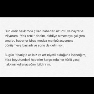 Murat Boz’la ilişkisini noktalayan Aslı Enver hakkında çıkan iddialara karşı sessizliğini hep korumuş hiçbir açıklamada bulunmamıştı. “İstanbullu Gelin” dizisinde rol alan güzel yıldız bugün Instagram’dan konu ile ilgili bir duyuru yayınladı. Aslı Enver hakkında çıkan asılsız haberler için yasal yollara başvuracağını açıkladı.