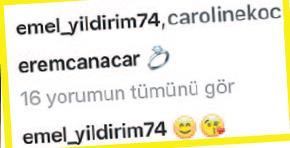Beraberliklerini Instagram’da ilan etmekten çekinmeyen Aylin Koç ile Eremcan Acar’ın aşkına annelerinden de onay çıktı. Müstakbel damadını instagram’da takip eden Caroline Koç, Eremcan’ın sevgilisiyle birlikte çekilen ve altına tek taş pırlanta emojisi koyduğu kareyi beğendi. Emel Yıldırım ise bu fotoğrafı beğenmekle kalmadı altına ‘kalpli öpücük’ emojisi de koydu.