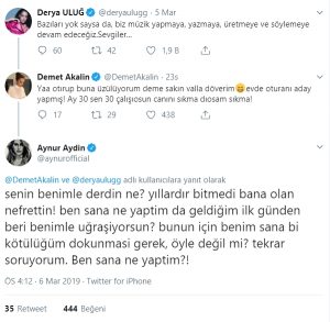 Bunun üzerine Aynur Aydın, Demet Akalın’a Twitter üzerinden cevap verdi.