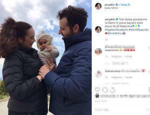 Azra Akın, 23 Nisan Ulusal Egemenlik ve Çocuk Bayramı’nda, eşi Atakan Koru ve 4,5 aylık oğlu Demir ile çekilmiş bir fotoğrafını paylaştı.