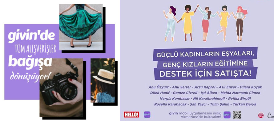 8 Mart Kadınlar Günü’ne özel HELLO! Givin Day ile, alanında güçlü kadınlar, kişisel eşyalarını Givin mobil- uygulaması aracılığıyla Türk Eğitim Vakfı’nın “Eğitimli Kızlar, Umutlu Yarınlar” projesine destek için bağışa dönüştürerek 60 genç kızın eğitim burslarına destek oldu.