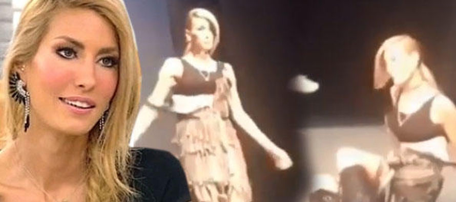 Ayağı kayan ünlü manken yere kapaklandı.