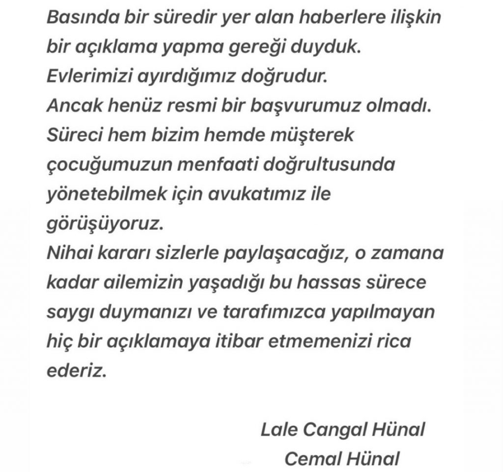 HomeMagazinCEMAL HÜNAL VE LALE CANGAL’DAN BOŞANMA AÇIKLAMASI