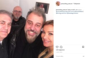 Tamer Karadağlı ve Pınar Altuğ’un başrollerinde yer aldığı “Çocuklar Duymasın” isimli dizinin setini Hamdi Alkan ziyaret etti. Pınar Altuğ bu ziyaretten bir fotoğrafı sosyal medya hesabına yükledi. Altına da “Sette misafir var” yazdı. Paylaşılan fotoğrafta Tamer Karadağlı, Pınar Altuğ, Birol Güven ve Hamdi Alkan aynı karede gözüküyor.