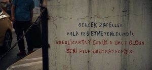 Çukur’un akşam yayınlanan bölümünde boş bir duvara “Gerçek zaferler asla pes etmeyenlerindir. Neslican Tay Çukur’a umut oldun, seni asla unutmayacağız” yazıldı.