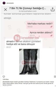 Şarkıcı Demet Akalın bu olaydan çok kısa süre sonra gördüğü bir haberle neye uğradığını şaşırdı. Hayranına hediye ettiği çizmenin satışa çıkarıldığını gören Demet Akalın, sosyal medya hesabından bu haberi paylaştı ve altına da yaşadığı hayal kırıklığıyla ilgili şunları yazdı: “Bazen bazıları gerçekten hiçbir şeyi haketmez! Numaramız aynı dedin! Hediye hatıra olarak saklanır satışa çıkmaz! Yazık geri gönder… Ben başka kıymet verecek gerçek bir fanıma veririm!”