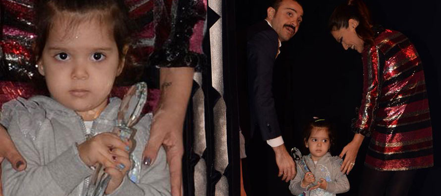 En iyi kadın şarkıcı seçilen Demet Akalın, ödülünü almaya giderken sahneye kızı Hira’yı da çıkarmak istedi ancak onu ikna edemedi. Anne kız, basına kuliste poz verdi.
