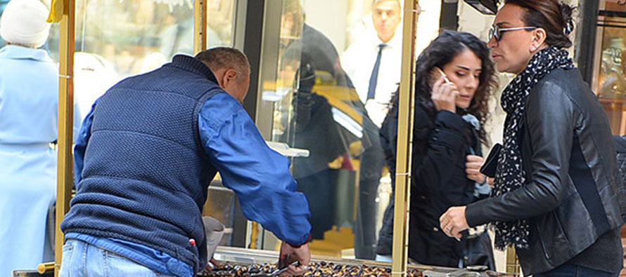 Demet Akbağ, City’s AVM çıkışı aracına binmeden önce canı kestane çekince soluğu sokakta gördüğü seyyar kestane satıcısının yanında aldı.