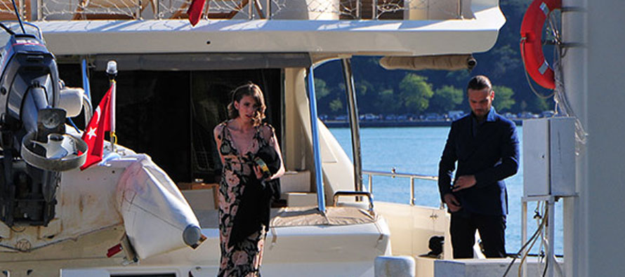 Aras Bulut İynemli, deniz kenarında iskelesi bulunan Beykoz kundura fabrikasına deniz taksiyle geldi. Yakışıklı oyuncu, taksiden inerken sevgilisi Bige Önal’a yardımcı oldu.