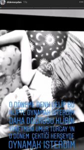 Ünlü model, klipten görüntülerin yer aldığı hikayesine, “O dönem denk gelip bu klipte oynamak isterdim. Daha doğrusu klibin yönetmeni Umur Turgay’ın o dönem çektiği her şeyde oynamak isterdim” notunu düştü.