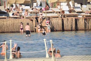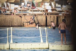 Yüzmeyi tercih etmeyen Akil, denizin içinde oturup zaman geçirdi.