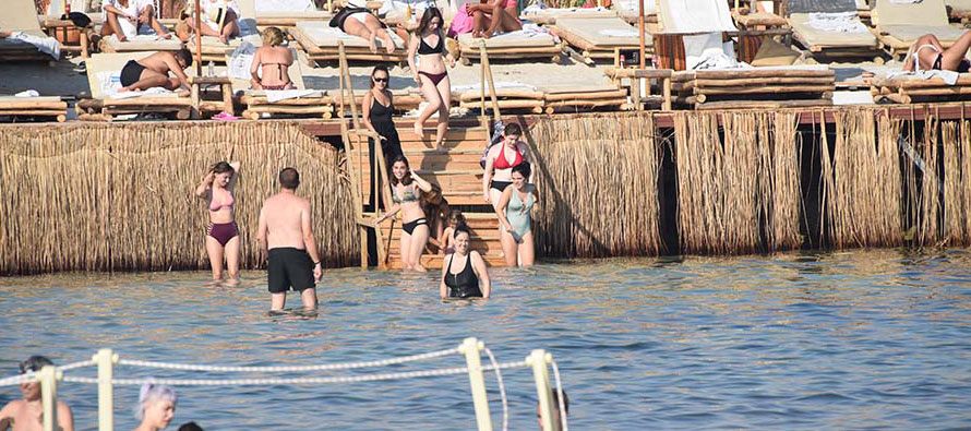 Denize girmek için akşam saatlerini bekleyen güzel oyuncu, güneş ışınlarının zararlı etkisini kaybetmesiyle birlikte kendini Ege’nin serin sularına bıraktı.