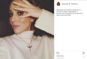 Elçin Sangu, paylaşımının altına “Göz makyajını abartmayı hiç sevmem, o yüzden vurgulamadım. Hele ışıltı pırıltı hiç sevmem” notunu düştü.