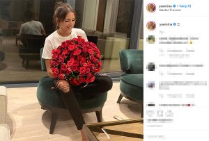 Güzel şarkıcı, İstanbul’daki evinde kucağında koca bir buket kırmızı gülle verdiği pozu Instagram’da paylaştı. Sadettin Saran’la ayrıldıktan sonra hep somurtkan haliyle görüntülenen Emina, ikinci kez barıştığı iş adamının gülleriyle adeta mutluluktan havalara uçtu.