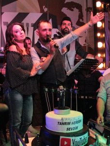 Sahnede pastayla kutladı