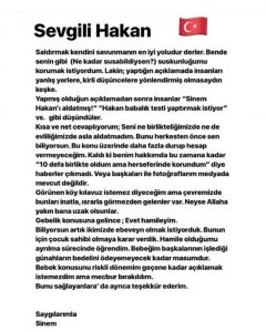 Magazin Ağustos 2, 2018 EŞİNDEN HAKAN ÇALHANOĞLU’NA CEVAP Hakan Çalhanoğlu’nun ‘Öyle bir şey yaşadım ki, affetmem mümkün değil; boşanıyorum’ açıklamasından sonra eşi Sinem Çalhanoğlu da sessizliğini bozdu… İşte Sinem Çalhanoğlu’nun cevabı: