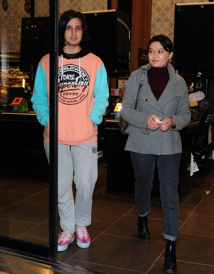 Nurgül Yeşilçay, oğlu Osman Nejat Özer’le Kuruçeşme’de bir markette yılbaşı alışverişi yaparken objektife takıldı.
