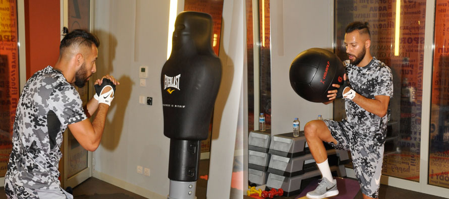 Galatasaray’ın yıldız futbolcusu Yasin Öztekin, evinin alt katını spor salonuna çevirerek hergün tek başına idman yapıyor.