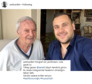 Erdim, 85 yaşındaki usta sanatçı ile çekildiği fotoğrafı Instagram sayfasında takipçileri ile paylaştı.