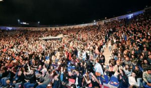 Haluk Levent, önceki gece Harbiye Açıkhava’da sevenleriyle buluştu. Konsere gelenler arasında Levent’in uzun yıllar küs kaldığı ve kısa süre önce barıştığı kardeşi Berkant Acil de vardı. Acil, “Nasıl barıştınız?” sorusuna şöyle yanıt verdi: “İzmir Marşı’nı okudu ve barıştık. Bu konser bir batağın dönüşüdür, bunu böyle bilin. Bitmiş bir adamın bu piyasaya tekrar girişidir. Hayranları resmen susamış Haluk’a, konser alanı tıklım tıklım görmüyor musunuz!”Haluk Levent’in 30 şarkı seslendirdiği gecede coşku bir an olsun dinmedi. Levent, geceyi smokiniyle “İzmir Marşı”nı seslendirerek noktaladı. Haluk Levent, ilk şarkı çalmaya başladığında coşkulu kalabalık arasından ilerleyerek sahneye çıktı.
