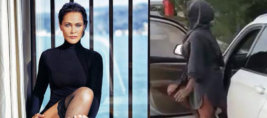Hülya Avşar, üstünde bornozu altında şıpıdık terlikleriyle aracının şoför koltuğundan inip dans etti.
