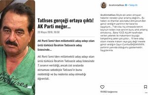 İbrahim Tatlıses, erken seçimde İzmir’den milletvekili adayı olabilmek için başvuruda bulunmuştu. Milletvekili aday listesinde kendisine yedinci sırada yer verildiği için milletvekilliğini reddettiği iddia edilen Tatlıses, bu söylentiler üzerine açıklama yaptı.