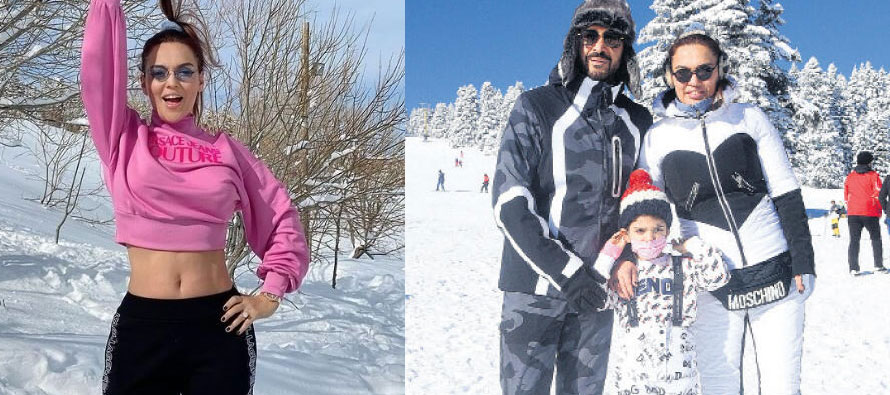 Demet Akalın, Okan Kurt ve kızı Hira’yla Uludağ’daydı.