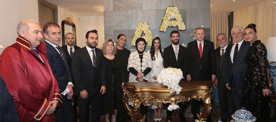Cumhurbaşkanı Recep Tayyip Erdoğan ve eşi Emine Erdoğan’ın da katıldığı törenden detaylar ortaya çıktı. Akşam saatlerindeki nikah törenine Cumhurbaşkanı Recep Tayyip Erdoğan ile eşi Emine Erdoğan, sivil plakalı bir araçla geldi.İstanbul Büyükşehir Belediye Başkanı Mevlüt Uysal’ın kıydığı nikahta Cumhurbaşkanı Erdoğan, Arda Turan’ın nikah şahidi oldu.Nikah törenine başta Arda Turan’ın kardeşi Okan Turan ve çok yakın akrabaları olmak üzere; Başakşehir Kulüp Başkanı Göksel Gümüşdağ, Abdullah Avcı, Emre Belözoğlu ve Cemal Sarıhan katıldı.