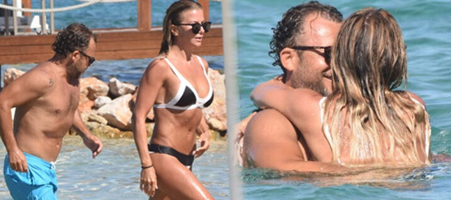 Suya gözlüklerle giren sevgililer, birbirlerine sarılmaya doymadı.Uzun süre denizden çıkmayan Sert ile Demirci, daha sonra şezlonglarına geçerek güneşlenmeye devam etti.