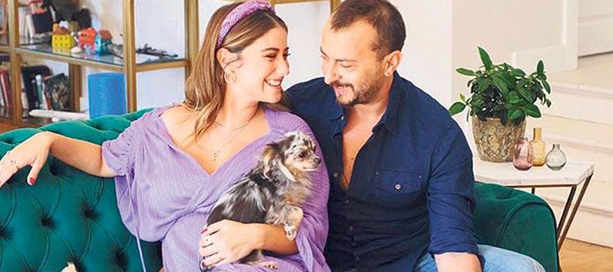 Sekiz aylık hamile Hazal Kaya, eşi Ali Atay ve köpekleriyle çektirdiği fotoğrafı Instagram’dan paylaştı.