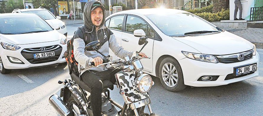 Birçok ünlü isim gibi ulaşım aracı olarak motosikleti tercih eden Koç’un kask takmak yerine eşofmanının kapüşonunu başına geçirmesi dikkat çekti.