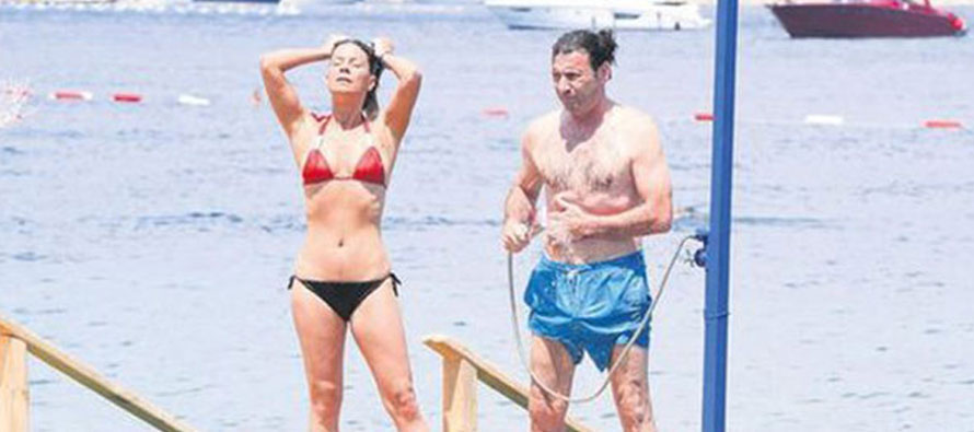 Makul fiyatlı bir yerde aşkıyla denize giren 53 yaşındaki futbol yorumcusunun keyfi yerindeydi. (Takvim)