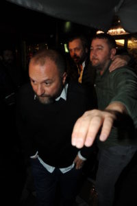 İşler, çıkışta ayakta durmakta güçlük çekince ünlü oyuncuya koluna giren iki kişi yardım etti.