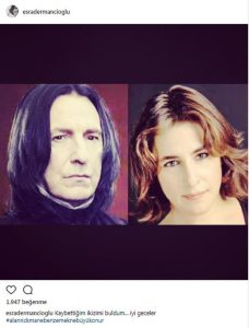2016 yılında hayatını kaybeden oyuncu Alan Rickman ile kendi fotoğrafını karşılaştıran Dermancıoğlu, altına şu notu düştü: