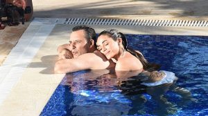 Azeri güzel Dilber Mahmadova ile kamera karşısına geçen Roman, fotoğraflarını çeken muhabirlere “Klip çekiyoruz, yanlış anlamayın” dedi.
