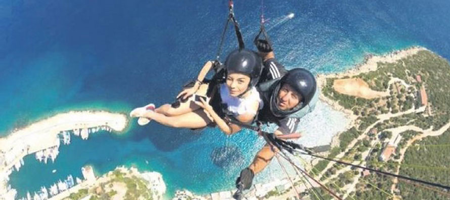 Kaş’ta ilk kez yamaç paraşütü yapan Şahin, “İlk kez böyle bir sporu denedim, müthiş duygu. Kendimi kuşlar kadar özgür hissettim'” diye konuştu. Oyuncu, Kaş’tan Çeşme Alaçatı’ya geçeceğini söyledi.