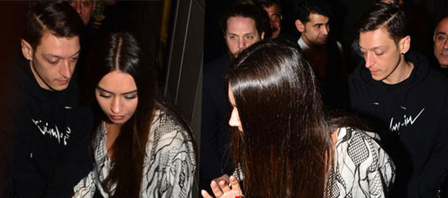 Arsenal’da forma giyen Mesut Özil ve nişanlısı Amine Gülşe, kutlama yemeğinde görüntülendi.