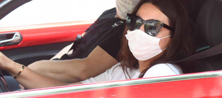 Volkswagen Beetle marka kırmızı aracının içinde görüntülenen Ural, maske takarak örnek oldu.