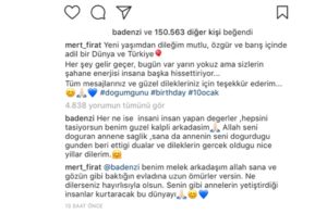 Mert Fırat’ın hesabından paylaştığı paylaşıma binlerce beğeni ve yorum gelirken ekip arkadaşlarından Bade İşçil doğum gününü kutladı. Bade İşçil’in Mert Fırat’a yazdığı yorum takipçilerden beğeni aldı.