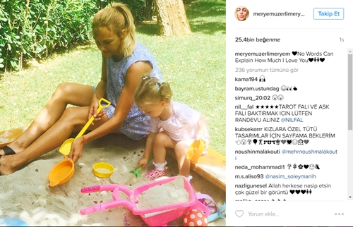 Uzerli sabah saatlerinde kızı Lara ile kumda oyun oynarken çekilmiş fotoğrafını yayınladı ve "Hiçbir kelime seni ne kadar sevdiğimi açıklayamaz" notunu düştü.